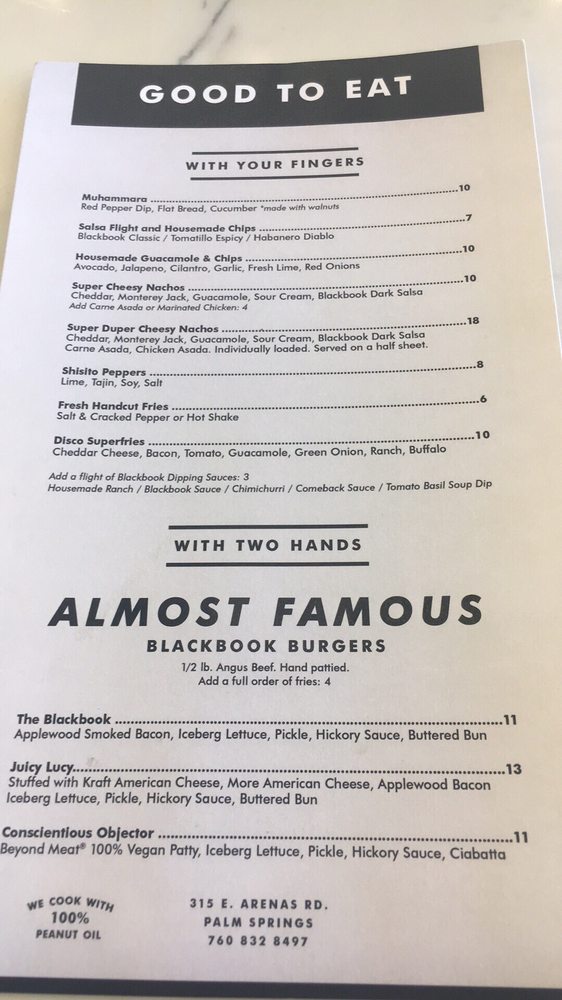 Welcome to Blackbook, a vibrant eatery located in sunny Palm Springs, where culinary creativity meets casual dining. At Blackbook, you’ll discover a diverse menu featuring an array of vegan and vegetarian options, including fan-favorites like the Mediterranean Sandwich and the flavorful Conscientious Objector burger.